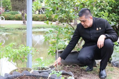 สำหรับกิจกรรมในวันนี้ได้รับความร่วมมือจากหลายภาคส่วน ทั้งหน่วยงานในสังกัด พช.โคราช และภาคีเครือข่าย เช่น นายณรงค์ บวชสันเทียะ ประธานศูนย์เรียนรู้โคกหนองนา อารยเกษตร จังหวัดนครราชสีมา ที่ได้ร่วมกันปรับปรุงภูมิทัศน์ เตรียมดิน และจัดทำแปลงผักสวนครัว ภายในบริเวณพื้นที่ว่างของจวนผู้ว่าราชการจังหวัดนครราชสีมา เพื่อปลูกพืชผักสวนครัวรั้วกินได้ เปรียบเสมือนการสร้าง “ตู้เย็นข้างบ้าน” และเป็นจุดเรียนรู้ต้นแบบในการน้อมนำหลักปรัชญาของเศรษฐกิจพอเพียงมาปรับใช้ในชีวิตประจำวัน ตามแนวทาง “โคราช ปั้นพื้นที่ว่าง สร้างคลังอาหาร”