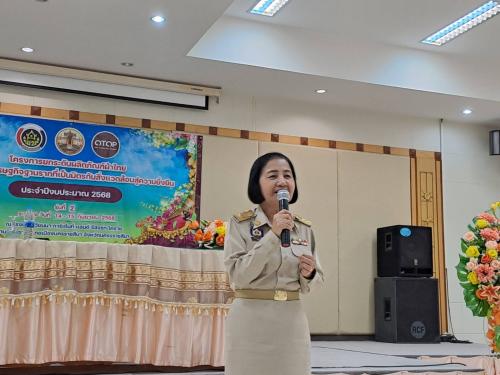 วันจันทร์ที่ 15 กันยายน 2568 เวลา 15.30 น. นางสาวพุทธิมาลย์ เชียรพิมาย พัฒนาการจังหวัดนครราชสีมา เป็นประธานในพิธีปิดการฝึกอบรมโครงการยกระดับผลิตภัณฑ์ผ้าไทย เพื่อพัฒนาเศรษฐกิจฐานรากที่เป็นมิตรกับสิ่งแวดล้อมสู่ความยั่งยืน รุ่นที่ 2 พร้อมด้วยผู้อำนวยการกลุ่มงานส่งเสริมการพัฒนาชุมชน ผู้อำนวยการกลุ่มงานยุทธศาสตร์การพัฒนาชุมชน และทีมเจ้าหน้าที่พัฒนาชุมชนจังหวัดนครราชสีมา