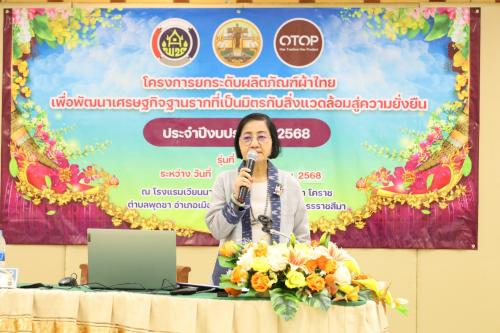 วันอังคารที่ 16 กันยายน 2568 นางสาวพุทธิมาลย์ เชียรพิมาย พัฒนาการจังหวัดนครราชสีมา เป็นประธานเปิด โครงการ "ยกระดับผลิตภัณฑ์ผ้าไทยเพื่อพัฒนาเศรษฐกิจฐานรากที่เป็นมิตรกับสิ่งแวดล้อมสู่ความยั่งยืน" ประจำปี 2568 รุ่นที่ 3 โดยมีนางอัญชนา มีชัย ผู้อำนวยการกลุ่มงานส่งเสริมการพัฒนาชุมชน กล่าวรายงานวัตถุประสงค์และความสำคัญของโครงการ และมีคณะผู้บริหารงานพัฒนาชุมชน ร่วมเป็นเกียรติในพิธี