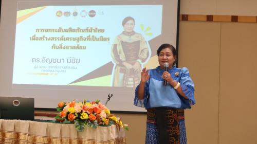 กิจกรรมช่วงเช้าของวันแรก เป็นการบรรยายให้ความรู้เกี่ยวกับทิศทางการขับเคลื่อนโครงการ "ผ้าไทยใส่ให้สนุก" และการยกระดับผลิตภัณฑ์ด้วยแนวคิดเศรษฐกิจที่เป็นมิตรต่อสิ่งแวดล้อม และในช่วงบ่ายเน้นการ Workshop ฝึกปฏิบัติการออกแบบลายผ้าเพื่อสร้างอัตลักษณ์ท้องถิ่น และเรียนรู้เทคนิคสร้างสรรค์ผ่านฐานกิจกรรม 5 ฐาน ประกอบด้วย 1. การฟอกย้อมจากวัสดุธรรมชาติ 2. การมัดย้อม 3. การทำผ้าบาติกหรือเขียนเทียน 4. การมัดหมี่ลายผ้า และ 5. การทำ Eco-print เพื่อให้กลุ่มเป้าหมายสามารถนำความรู้ไปต่อยอดสร้างสรรค์ผลิตภัณฑ์ที่มีคุณภาพ สามารถจดทะเบียน OTOP ตอบโจทย์ตลาด และสร้างรายได้ให้แก่ครอบครัวและชุมชนต่อไป