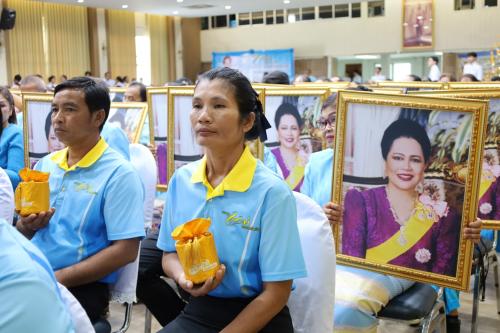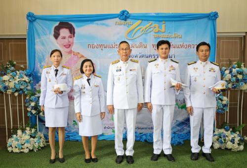 ในการนี้ นางสาวพุทธิมาลย์ เชียรพิมาย พัฒนาการจังหวัดนครราชสีมา กล่าวรายงานว่าพิธีมอบเงินพระราชทาน "ขวัญถุง" และพระฉายาลักษณ์ในวันนี้ มีวัตถุประสงค์หลักเพื่อเป็นการเทิดพระเกียรติ และสนองพระราชปณิธานของสมเด็จพระนางเจ้าสิริกิติ์ พระบรมราชินีนาถ พระบรมราชชนนีพันปีหลวง ที่ทรงห่วงใยต่อปัญหายาเสพติดอย่างลึกซึ้ง และได้พระราชทานพระราชทรัพย์ส่วนพระองค์เพื่อจัดตั้งกองทุนแม่ของแผ่นดิน ให้เป็น "ทุนตั้งต้นแห่งความดี" สำหรับชุมชนนำไปใช้ในการป้องกันและแก้ไขปัญหายาเสพติดด้วยแนวทางสันติวิธี โดยในวันนี้ ได้นำประธานและผู้แทนหมู่บ้าน/ชุมชน กองทุนแม่ของแผ่นดิน จำนวน 47 หมู่บ้าน/ชุมชน เข้ารับมอบเงินพระราชทานขวัญถุงและพระฉายาลักษณ์เบื้องหน้าพระฉายาลักษณ์สมเด็จพระนางเจ้าสิริกิติ์ พระบรมราชินีนาถ พระบรมราชชนนีพันปีหลวง