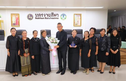 1. มอบช่อดอกไม้แสดงความยินดีแก่กลุ่มหัตถกรรมผ้าไหมบ้านดู่ อ.ปักธงชัย รางวัล “หม่อมงามจิตต์ บุรฉัตร บุคคลสำคัญของโลก“ รางวัลสร้างเสริมคนดี มีคุณธรรม ประจำปี 2568