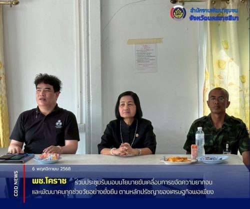 วันพฤหัสบดีที่ 6 พฤศจิกายน 2568 นางสาวพุทธิมาลย์ เชียรพิมาย พัฒนาการจังหวัดนครราชสีมา ผนึกกำลังภาคีเครือข่ายจัดการประชุมเชิงปฏิบัติการสรุปผลและขับเคลื่อน "นโยบายพัฒนาโมเดลแก้จนระดับอุตสาหกรรมเชิงพื้นที่ (Area Based Industry)" โดยมีวัตถุประสงค์เพื่อสร้างความมั่นคงทางอาหารและรายได้ให้แก่ครัวเรือนกลุ่มเปราะบาง โดยมีนางศิริพร ฤทธิสนธิ์ ผู้อำนวยการกลุ่มงานสารสนเทศ, นางอังคณา คุปติศิริรัตน์ พัฒนาการอำเภอปักธงชัย, นายไกรฤกษ์ ฤกษ์ยรรยง จากสำนักความยั่งยืนด้านสังคมและสิ่งแวดล้อม (SD CPF), และ ร.ต.ตุลยวัฒน์ ไชยศุพมงคล ผู้ดูแลโครงการทหารพันธุ์ดีของกองทัพบกที่ 21 และเจ้าหน้าที่พัฒนาชุมชน เข้าร่วมประชุมอย่างพร้อมเพียง ณ ที่ว่าการอำเภอปักธงชัย
