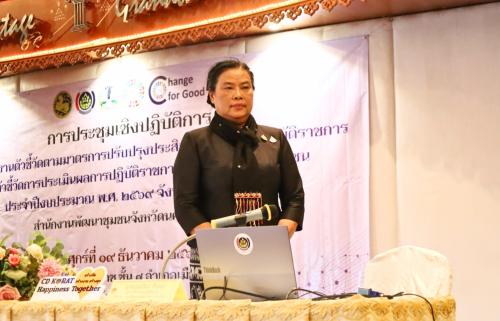 ด้าน นางอรุณรัตน์ ชิงชนะ ผู้ตรวจราชการกรมการพัฒนาชุมชน ได้มอบนโยบายและแนวทางการขับเคลื่อนงาน "Change for Good" โดยเน้นย้ำให้บุคลากรทำงานเชิงรุกตามนโยบาย "5 Action" ของกระทรวงมหาดไทย และให้ความสำคัญกับการบริหารงบประมาณอย่างมีประสิทธิภาพ (Front Load) เพื่อให้เกิดผลสัมฤทธิ์ต่อประชาชนอย่างรวดเร็วและยั่งยืน