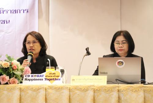 นางกนกรัชต์ วงษ์กาฬสินธุ์ พัฒนาการจังหวัดนครราชสีมา กล่าวว่า การจัดประชุมในครั้งนี้มีวัตถุประสงค์เพื่อสร้างความเข้าใจในกรอบการประเมินผลและแนวทางการดำเนินงานตามตัวชี้วัด (KPIs) ที่ครอบคลุมทั้งด้านภารกิจหลัก (Functional) และศักยภาพองค์กร (Potential) เพื่อขับเคลื่อนงานให้สอดคล้องกับยุทธศาสตร์ชาติและการบริการประชาชน โดยเน้นย้ำโมเดลการทำงาน “CD KORAT Happiness Together” ผ่านกระบวนการ 3 สร้าง คือ สร้างทีม (Build Team), สร้างงาน (Build Work) และสร้างสุข (Build Happiness) โดยยึดหลัก “คน-งบ-ระบบ-งาน” มุ่งสู่การเป็นองค์กร “เก่ง ดี มีสุข” และตอบโจทย์วาระงานสำคัญของจังหวัดนครราชสีมา อาทิ การยกระดับผ้าไทย, ผลิตภัณฑ์ OTOP PLUS, การแก้ปัญหาความยากจน (TPMAP) และการป้องกันแก้ไขปัญหายาเสพติดโดยกองทุนแม่ของแผ่นดิน