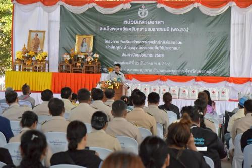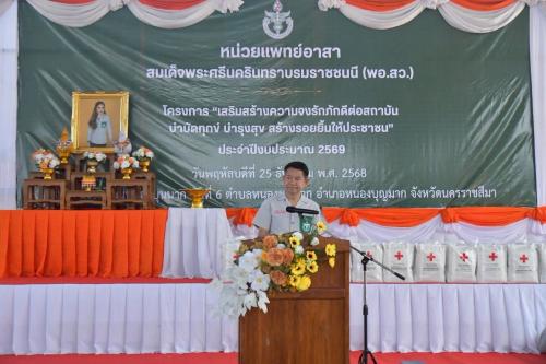 วันพฤหัสบดีที่ 25 ธันวาคม 2568 เวลา 09.30 น. นายอนุพงศ์ สุขสมนิตย์ ผู้ว่าราชการจังหวัดนครราชสีมา มอบหมายให้ นายบุญเต็ม กัลยาพานิช ปลัดจังหวัดนครราชสีมา เป็นประธานในพิธีเปิดกิจกรรมหน่วยแพทย์อาสาสมเด็จพระศรีนครินทราบรมราชชนนี (พอ.สว.) ร่วมกับ โครงการ “สร้างเสริมความจงรักภักดีต่อสถาบัน บำบัดทุกข์ บำรุงสุข สร้างรอยยิ้มให้ประชาชน” ประจำปีงบประมาณ พ.ศ. 2569 (จังหวัดเคลื่อนที่) ณ โรงเรียนบ้านหนองบุนนาก หมู่ที่ 6 ตำบลหนองบุนนาก อำเภอหนองบุญมาก จังหวัดนครราชสีมา โดยมีรองนายแพทย์สาธารณสุขจังหวัดนครราชสีมา กล่าวรายงานวัตถุประสงค์ และนายพงษ์เทพ จันทร์นอก นายอำเภอหนองบุญมาก กล่าวต้อนรับหัวหน้าส่วนราชการจังหวัด ส่วนราชการอำเภอ กำนัน ผู้ใหญ่บ้าน และประชาชนในพื้นที่อำเภอหนองบุญมากที่เข้าร่วมกิจกรรม