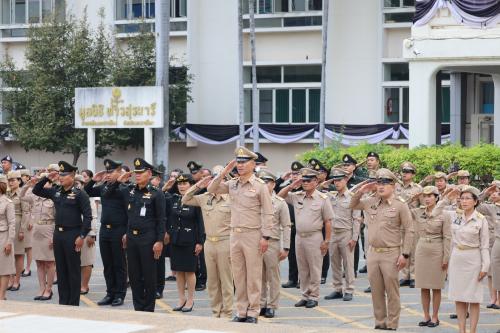 ในการนี้ นางกนกรัชต์ วงษ์กาฬสินธุ์ พัฒนาการจังหวัดนครราชสีมา พร้อมด้วยคณะผู้บริหารงานพัฒนาชุมชน ข้าราชการ และบุคลากรในสังกัดสำนักงานพัฒนาชุมชนจังหวัดนครราชสีมา ได้ร่วมเข้าแถวเคารพธงชาติอย่างพร้อมเพรียงกัน