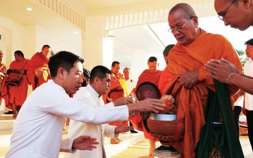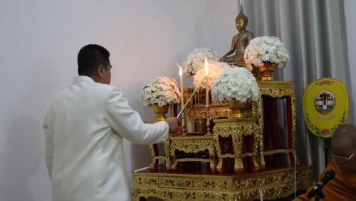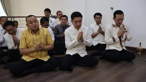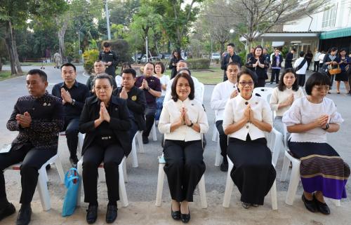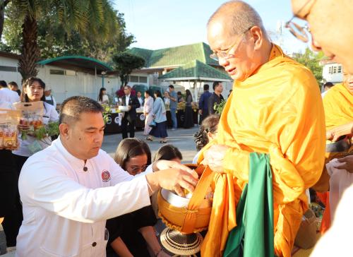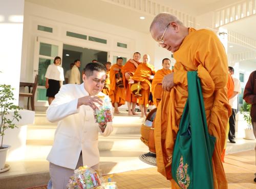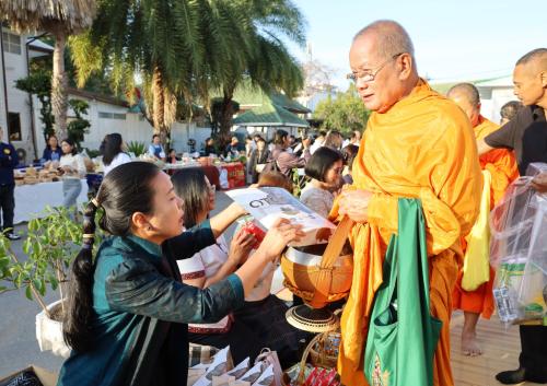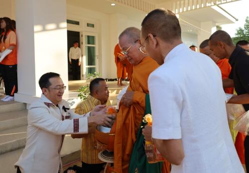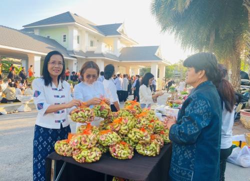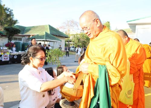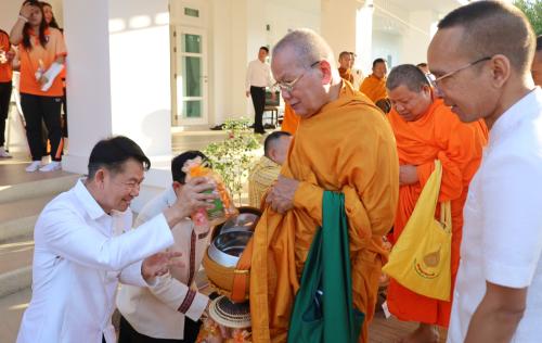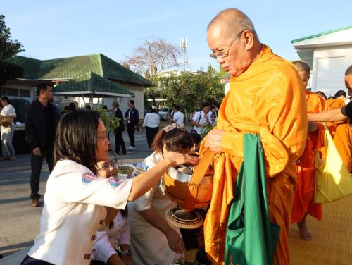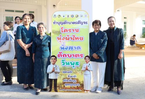 ในการนี้ นางกนกรัชต์ วงษ์กาฬสินธุ์ พัฒนาการจังหวัดนครราชสีมา พร้อมด้วยนางสาวปุญญิสา คำนาค ผู้อำนวยการกลุ่มงานยุทธศาสตร์การพัฒนาชุมชน นางสาวธัญลักษณ์ ชันไธสง ผู้อำนวยการกลุ่มงานประสานและสนับสนุนการบริหารงานพัฒนาชุมชน และบุคลากรในสังกัดสำนักงานพัฒนาชุมชนจังหวัดนครราชสีมา เข้าร่วมกิจกรรมทำบุญตักบาตรและรับศีลรับพรเพื่อความเป็นสิริมงคล พร้อมทั้งร่วมรณรงค์การสวมใส่ผ้าไทยให้เป็นวิถีชีวิต (Soft Power) สะท้อนอัตลักษณ์อันความงดงามทรงคุณค่าของชาวโคราช ผ่านกิจกรรม "นั่งสาด" (นั่งเสื่อ) ร่วมทำบุญในบรรยากาศที่อบอุ่นและเรียบง่าย