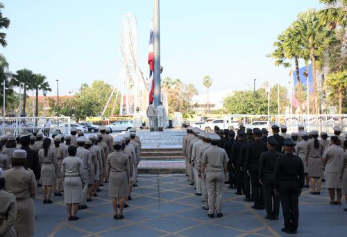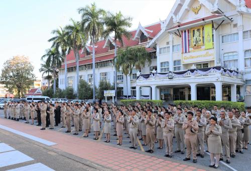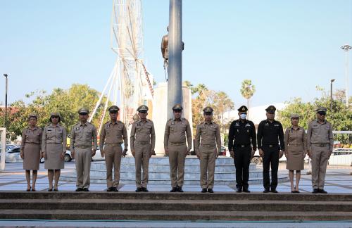 ในการนี้ นางกนกรัชต์ วงษ์กาฬสินธุ์ พัฒนาการจังหวัดนครราชสีมา พร้อมด้วยคณะผู้บริหารงานพัฒนาชุมชน ข้าราชการ และบุคลากรในสังกัดสำนักงานพัฒนาชุมชนจังหวัดนครราชสีมา ได้ร่วมเข้าแถวเคารพธงชาติอย่างพร้อมเพรียงกัน