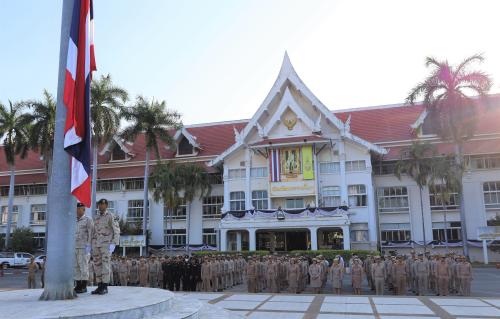 วันจันทร์ที่ 2 กุมภาพันธ์ 2569 เวลา 08.00 น. นายอนุพงศ์ สุขสมนิตย์ ผู้ว่าราชการจังหวัดนครราชสีมา นำหัวหน้าส่วนราชการ ข้าราชการ ทหาร ที่มีหน่วยงานตั้งอยู่ภายในศาลากลางจังหวัดนครราชสีมา ร่วมกิจกรรมเคารพธงชาติและร้องเพลงชาติไทย เพื่อแสดงออกถึงความจงรักภักดีต่อสถาบันชาติ ศาสนา และพระมหากษัตริย์ รวมถึงเป็นการน้อมรำลึกในพระมหากรุณาธิคุณของบรรพบุรุษไทย และเสริมสร้างระเบียบวินัย ความรู้รักสามัคคีให้แก่ข้าราชการและเจ้าหน้าที่ในการปฏิบัติหน้าที่เพื่อประชาชน