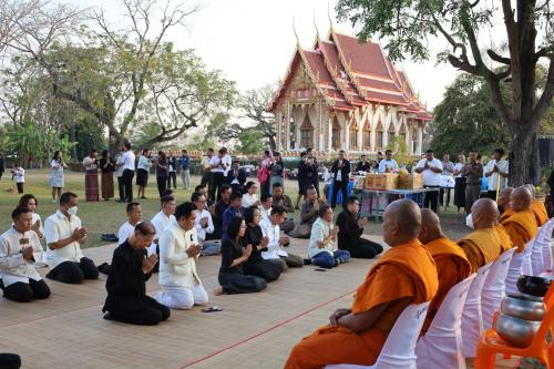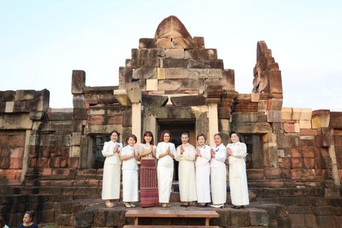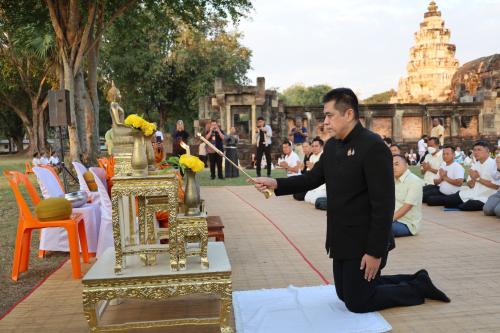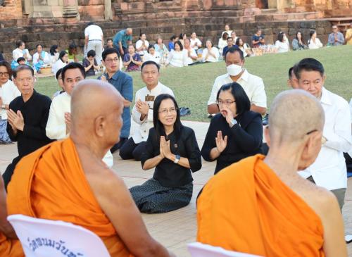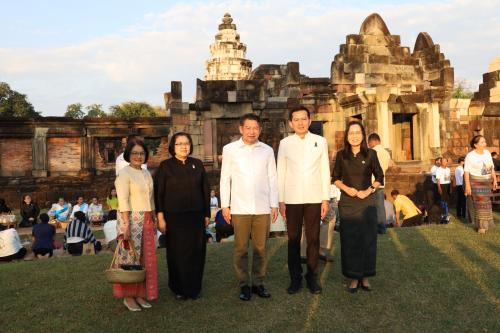 ในการนี้ นางกนกรัชต์ วงษ์กาฬสินธุ์ พัฒนาการจังหวัดนครราชสีมา พร้อมด้วยคณะผู้บริหารงานพัฒนาชุมชน ข้าราชการ และเจ้าหน้าที่ในสังกัด ได้เข้าร่วมทำบุญตักบาตรและรับศีลรับพรเพื่อความเป็นสิริมงคล พร้อมทั้งร่วมรณรงค์การสวมใส่ผ้าไทยให้เป็นวิถีชีวิต (Soft Power) สะท้อนอัตลักษณ์อันทรงคุณค่าของจังหวัดนครราชสีมาผ่านกิจกรรม "นั่งสาด" (นั่งเสื่อ) รอใส่บาตร ท่ามกลางบรรยากาศอันมนต์ขลังของปราสาทหินพนมวัน โบราณสถานสำคัญที่สะท้อนถึงอารยธรรมและความศรัทธาของชาวโคราช