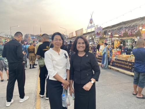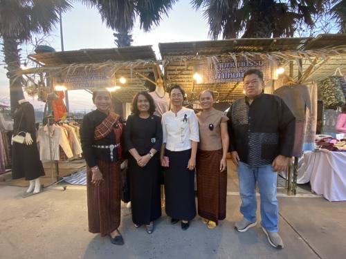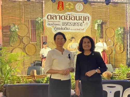 ในการนี้ นางกนกรัชต์ วงษ์กาฬสินธุ์ พัฒนาการจังหวัดนครราชสีมา มอบหมายให้ นางสาวธัญลักษณ์ ชันไธสง ผู้อำนวยการกลุ่มงานประสานและสนับสนุนการบริหารงานพัฒนาชุมชน พร้อมด้วย นางสาวปุณญิสา คำนาค ผู้อำนวยการกลุ่มงานยุทธศาสตร์การพัฒนาชุมชน เข้าร่วมพิธีเปิดตลาดชุมชนย้อนยุค และร่วมเยี่ยมชมให้กำลังใจกลุ่มผู้ผลิต ผู้ประกอบการ OTOP ที่เข้าร่วมจัดแสดงและจำหน่ายสินค้าภายในงาน เพื่อเป็นการสนับสนุนช่องทางการตลาดและสร้างขวัญกำลังใจให้แก่ผู้ประกอบการในการขับเคลื่อนเศรษฐกิจฐานรากของจังหวัดนครราชสีมา