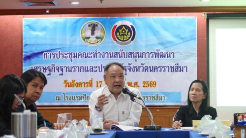 วันอังคารที่ 17 มีนาคม พ.ศ. 2569 เวลา 09.00 น. นางกนกรัชต์ วงษ์กาฬสินธุ์ พัฒนาการจังหวัดนครราชสีมา เป็นประธานการประชุมคณะทำงานสนับสนุนการพัฒนาเศรษฐกิจฐานรากและประชารัฐจังหวัดนครราชสีมา ครั้งที่ 2/2569 เพื่อติดตามความคืบหน้าและวางแนวทางการดำเนินงานตามนโยบาย “สานพลังประชารัฐ” โดยมุ่งเน้นการบูรณาการความร่วมมือจาก 5 ภาคส่วน ได้แก่ ภาครัฐ ภาคเอกชน ภาคประชาสังคม ภาควิชาการ และภาคประชาชน เพื่อสร้างรายได้ให้ชุมชนและสร้างความสุขให้กับประชาชนอย่างเป็นรูปธรรม โดยมีนายมนตรี จงวิเศษ กรรมการผู้จัดการบริษัท รู้รักสามัคคีนครราชสีมา (วิสาหกิจเพื่อสังคม จำกัด) ร่วมประชุมรับทราบภารกิจในการสนับสนุนเป้าหมายการพัฒนาด้านการตลาด