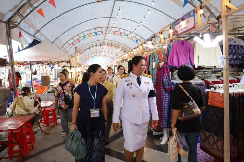 ในการนี้ นางกนกรัชต์ วงษ์กาฬสินธุ์ พัฒนาการจังหวัดนครราชสีมา คณะผู้บริหารงานพัฒนาชุมชน พัฒนาการอำเภอ และบุคลากรในสังกัดสำนักงานพัฒนาชุมชนจังหวัดนครราชสีมา ได้พร้อมใจกันร่วมรำบวงสรวงสักการะย่าโม และสนับสนุนการจัดแสดงและจำหน่ายสินค้า OTOP รวมถึงนิทรรศการชุดไทยพระราชนิยม 8 แบบ เพื่อเผยแพร่วัฒนธรรมและภูมิปัญญาท้องถิ่นให้เป็นที่ประจักษ์แก่แก่นักท่องเที่ยว