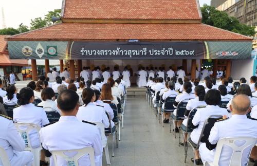 วันอังคารที่ 24 มีนาคม 2569 เวลา 06.30 น. นายอนุพงศ์ สุขสมนิตย์ ผู้ว่าราชการจังหวัดนครราชสีมา เป็นประธานในพิธีบวงสรวงถวายเครื่องสักการะอนุสาวรีย์ท้าวสุรนารี ประจำปี 2569 และอัญเชิญแพรสะไบขึ้นห่มองค์ท้าวสุรนารี โดยมีหัวหน้าส่วนราชการ ข้าราชการ ตุลาการ ทหาร ตำรวจ และประชาชนชาวโคราชพร้อมใจกันเข้าร่วมพิธีอย่างเนืองแน่น เพื่อร่วมแสดงความกตัญญูกตเวทีและรำลึกถึงวีรกรรมอันกล้าหาญของคุณหญิงโม วีรสตรีผู้เสียสละปกป้องเมืองนครราชสีมาให้รอดพ้นจากอริราชศัตรู