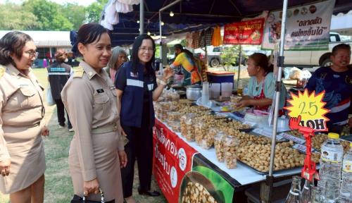 นอกจากนี้ สำนักงานพัฒนาชุมชนอำเภอห้วยแถลงได้นำกลุ่มผู้ประกอบการชุมชน เครือข่าย OTOP ร่วมจัดแสดงและจำหน่ายผลิตภัณฑ์ของดีอำเภอห้วยแถลง ผ่าน “ตลาดนัดคนไทยยิ้มได้” รวมทั้งจุดให้บริการกองทุนพัฒนาบทบาทสตรีแก่ประชาชนและผู้เข้าร่วมงาน ณ โรงเรียนบ้านแสนสุข บ้านแสนสุข หมู่ที่ 8 ตำบลห้วยแถลง อำเภอห้วยแถลงจังหวัดนครราชสีมา