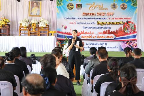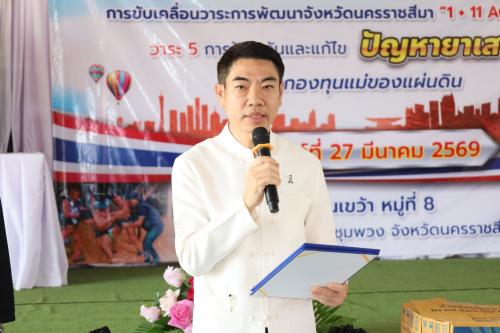 วันศุกร์ที่ 27 มีนาคม 2569 นายบัลลังก์ ไวทย์ศิริ รองผู้ว่าราชการจังหวัดนครราชสีมา เป็นประธานในพิธีเปิดกิจกรรม Kick Off การขับเคลื่อนวาระการพัฒนาจังหวัดนครราชสีมา “1 + 11 AGENDA KORAT” วาระที่ 5 การป้องกันและแก้ไขปัญหายาเสพติดโดยกองทุนแม่ของแผ่นดิน ร่วมกับ อำเภอชุมพวง เพื่อรวมพลังมวลชนในการต่อสู้กับยาเสพติดและสร้างความเข้มแข็งให้กับหมู่บ้าน/ชุมชน ตามแนวทางสันติวิธี