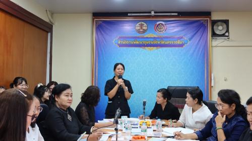 ในโอกาสนี้ ที่ประชุมได้แนะนำพัฒนากรใหม่ (รุ่นที่ 134) จำนวน 5 ราย ที่จะลงพื้นที่ปฏิบัติราชการในจังหวัดนครราชสีมา เพื่อร่วมเสริมทัพขับเคลื่อนงานสำคัญ อาทิ โครงการ OTOP Plus, การส่งเสริมภูมิปัญญาผ้าไทย, การสร้างความมั่นคงทางอาหาร, การบริหารจัดการกองทุนพัฒนาบทบาทสตรี และโครงการแก้ไขปัญหาความยากจน (กข.คจ.) ให้เห็นผลเป็นรูปธรรม นอกจากนี้ยังได้เตรียมความพร้อมจัดงานบุญทอดผ้าป่าสมทบกองทุนพัฒนาเด็กชนบทฯ ในพระราชูปถัมภ์ สมเด็จพระกนิษฐาธิราชเจ้า กรมสมเด็จพระเทพรัตนราชสุดาฯ สยามบรมราชกุมารี ในวันศุกร์ที่ 3 เมษายน 2569 ณ วัดกระโตน อำเภอประทาย จังหวัดนครราชสีมา