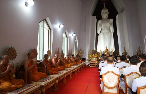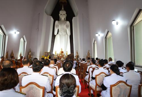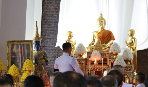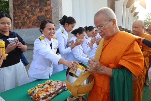 ในการนี้ นางกนกรัชต์ วงษ์กาฬสินธุ์ พัฒนาการจังหวัดนครราชสีมา มอบหมายให้ นางสาวธัญลักษณ์ ชันไธสง ผู้อำนวยการกลุ่มงานประสานและสนับสนุนการบริหารงานพัฒนาชุมชน และบุคลากรในสังกัดสำนักงานพัฒนาชุมชนจังหวัดนครราชสีมา เข้าร่วมพิธีเจริญพระพุทธมนต์และร่วมทำบุญตักบาตรข้าวสารอาหารแห้งแด่พระสงฆ์และสามเณร จำนวน 40 รูป เพื่อถวายเป็นพระราชกุศลและแสดงความกตัญญูกตเวที