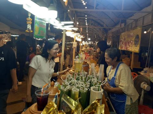 วันพุธที่ 1 เมษายน 2569 นางกนกรัชต์ วงษ์กาฬสินธุ์ พัฒนาการจังหวัดนครราชสีมา พร้อมทีมผู้บริหาร และบุคลากรในสังกัดสำนักงานพัฒนาชุมชนจังหวัดนครราชสีมา เข้าเยี่ยมชมและให้กำลังใจผู้ประกอบการ OTOP ที่เข้าร่วมงานฉลองวันแห่งชัยชนะท้าวสุรนารี ประจำปี 2569 ณ บริเวณด้านข้างลานอนุสาวรีย์ท้าวสุรนารี (ตรงข้ามโรงแรมเมืองทอง) และพูดคุยแลกเปลี่ยนเพื่อหาแนวทางส่งเสริมช่องทางการตลาดให้แก่สินค้าชุมชนในอนาคต พร้อมกันนี้ ได้เชิญชวนภาคส่วนต่างๆ ทั้งภาครัฐ เอกชน และประชาชน ร่วมอุดหนุนผลิตภัณฑ์คุณภาพจากฝีมือคนในท้องถิ่น เพื่อช่วยส่งเสริมให้เศรษฐกิจฐานรากเกิดความหมุนเวียนและเติบโตอย่างต่อเนื่อง ซึ่งงานจะจัดขึ้นไปจนถึงวันที่ 3 เมษายนนี้