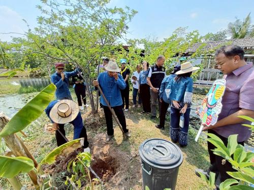 ณ ศูนย์เรียนรู้การพัฒนาคุณภาพชีวิตตามหลักทฤษฎีใหม่ประยุกต์สู่ "โคก หนอง นา" แปลงนายอ่อน คำหวาย บ้านหนองแวง หมู่ที่ 1 ตำบลหนองหว้า อำเภอบัวลาย จังหวัดนครราชสีมา
