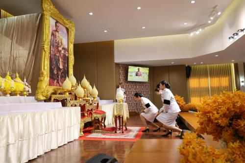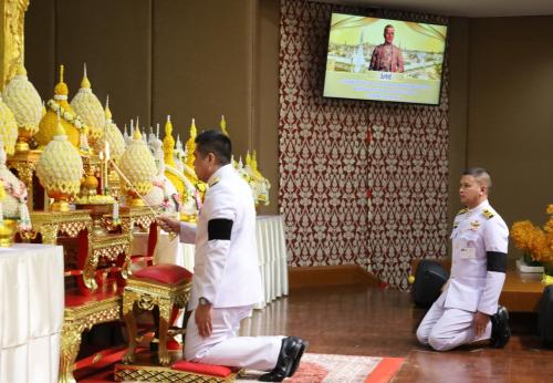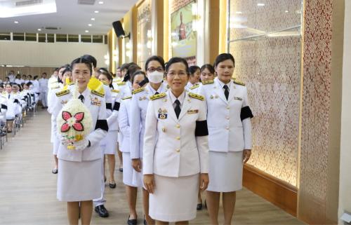 ในการนี้ นางกนกรัชต์ วงษ์กาฬสินธุ์ พัฒนาการจังหวัดนครราชสีมา พร้อมด้วย ผู้บริหารงานพัฒนาชุมชน และเจ้าหน้าที่สำนักงานพัฒนาชุมชนจังหวัดนครราชสีมา ร่วมประกอบพิธีวางพานพุ่มดอกไม้สด เพื่อถวายเป็นพระราชกุศลและน้อมรำลึกในพระมหากรุณาธิคุณ
