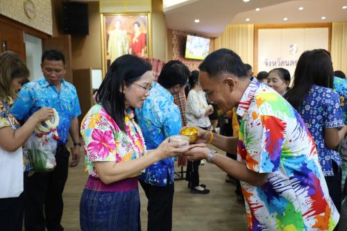 ในการนี้ นางกนกรัชต์ วงษ์กาฬสินธุ์ พัฒนาการจังหวัดนครราชสีมา พร้อมด้วย บุคลากรในสังกัดสำนักงานพัฒนาชุมชนจังหวัดนครราชสีมา ได้ร่วมกันสรงน้ำพระพุทธรูปและรดน้ำขอพรจาก ผู้ว่าราชการจังหวัดนครราชสีมา เพื่อเป็นการแสดงความเคารพรักและความนับถือ ตลอดจนสร้างขวัญกำลังใจในการปฏิบัติราชการก่อนที่จะเดินทางกลับภูมิลำเนาในช่วงเทศกาลวันหยุดยาวโดยสวัสดิภาพ