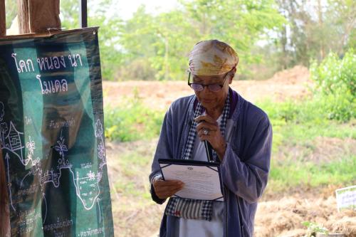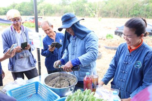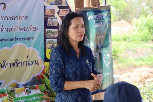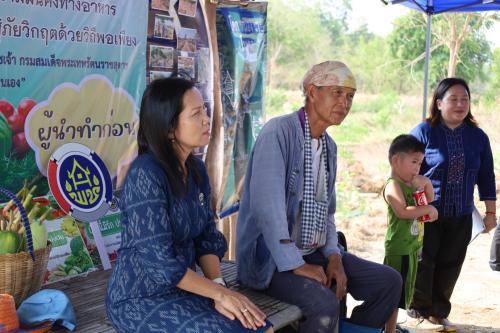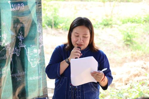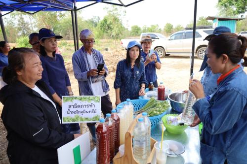 สำหรับกิจกรรมภายในพื้นที่ ได้มีการเยี่ยมชมแปลงโคกหนองนาซึ่งมีความโดดเด่นด้านการปลูกพืชให้สีธรรมชาติ เช่น ต้นเพกา ฝาง ต้นสัก ฯลฯ รวมถึงมีการเลี้ยงปลาด้วยอาหารลดต้นทุน นอกจากนี้ยังมีการสาธิตการทำน้ำหมักชีวภาพ การทำจุลินทรีย์สังเคราะห์แสง และการทำ "แซนวิชอาหารปลา" เพื่อนำไปใช้ประโยชน์ในแปลงเกษตร ก่อนปิดท้ายกิจกรรมด้วยพัฒนาการจังหวัดและผู้เข้าร่วมงานได้ร่วมกันลงมือปลูกผักสวนครัว เพื่อเป็นต้นแบบในการสร้างความมั่นคงทางอาหารในชุมชน