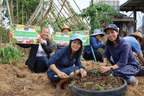 พช.โคราช ลงพื้นที่ปักธงชัย ลุยปฏิบัติการ "Quick Win 90 วัน" ปลูกผักสวนครัวสร้างความมั่นคงทางอาหารสู้ภัยวิกฤตด้วยวิถีพอเพียง