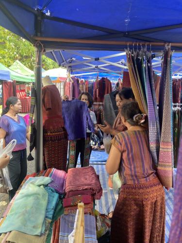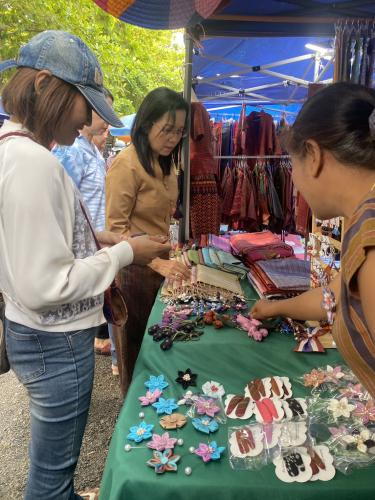 สำหรับการลงพื้นที่ในครั้งนี้ คณะฯ ได้ร่วมเยี่ยมชมและพูดคุยแลกเปลี่ยนประสบการณ์กับผู้ประกอบการโดยตรง ซึ่ง “ตลาดนัดผ้าไหมสุรินทร์” ถือเป็นแหล่งรวมผลิตภัณฑ์ผ้าไหมขึ้นชื่อและสินค้าชุมชนคุณภาพที่สามารถสร้างรายได้ให้กับคนในพื้นที่ได้อย่างเป็นรูปธรรม โดยตลาดแห่งนี้จัดขึ้นบริเวณสนามหน้าที่ว่าการอำเภอเมืองสุรินทร์ จังหวัดสุรินทร์ เปิดจำหน่ายให้ประชาชนและนักท่องเที่ยวได้มาเดินเลือกซื้อสินค้าเป็นประจำทุกวันเสาร์ ตั้งแต่เวลา 08.00 - 12.00 น.