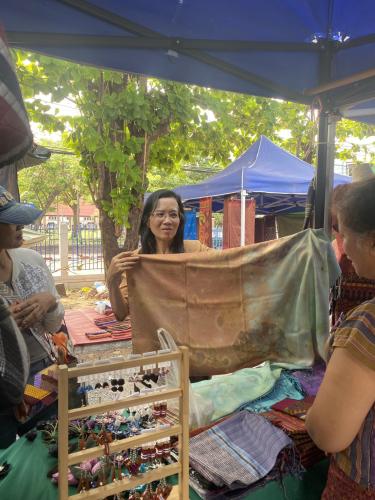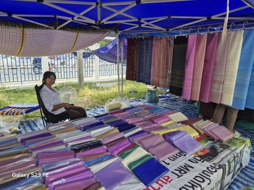 ณ ตลาดนัดผ้าไหมสุรินทร์ บริเวณสนามหน้าที่ว่าการอำเภอเมืองสุรินทร์ จังหวัดสุรินทร์