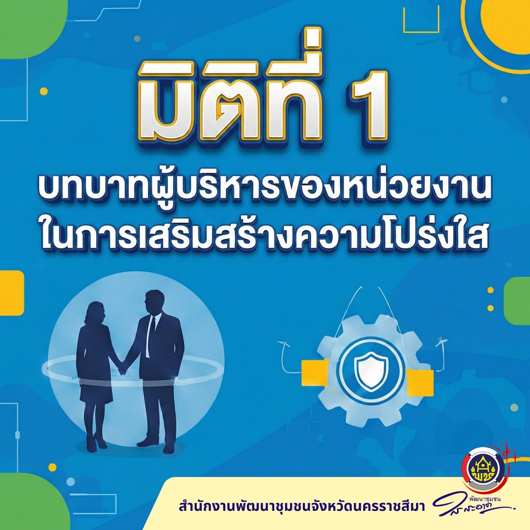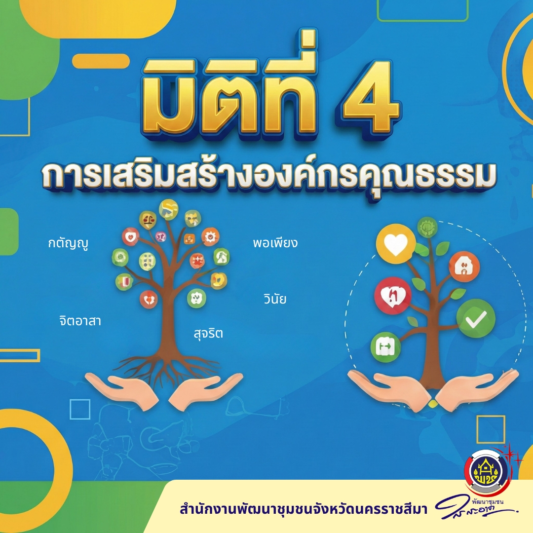 สำนักงานพัฒนาชุมชนจังหวัดนครราชสีมา ได้สนองนโยบายสำคัญดังกล่าวโดยมีวัตถุประสงค์เพื่อให้การทำงานด้านการพัฒนาชุมชนดำเนินไปอย่างโปร่งใส มีประสิทธิภาพอย่างต่อเนื่องและเป็นมาตรการป้องกันการทำผิดวินัยของข้าราชการในสังกัด และยังปลูกจิตสำนึกให้ข้าราชการและเจ้าหน้าที่ในสังกัดสำนักงานพัฒนาชุมชนจังหวัดนครราชสีมามีระเบียบวินัย ปฏิบัติหน้าที่ด้วยความโปร่งใส ซื่อสัตย์ สุจริต ยึดมั่นในคุณธรรมจริยธรรม มีจิตสำนึกที่ดีในการปฏิบัติหน้าที่ ทุ่มเทเสียสละในการปฏิบัติงานให้เกิดประโยชน์สูงสุดในการพัฒนาประเทศ ทำให้ข้าราชการพัฒนาชุมชนจังหวัดนครราชสีมามีเกียรติมีศักดิ์ศรี เป็นที่ยอมรับของหน่วยงานราชการ และประชาชนต่อไป